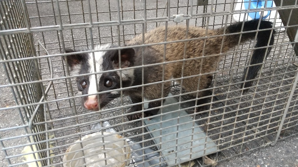 今回は、屋根裏で走り回るハクビシンを捕獲いたしました。